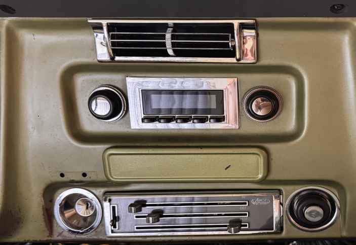 The original radio was an AM radio, but it did not work when I bought the truck. I replaced this with a Retrosound radio. This is a RetroRadio for a 1967-72 Chevy C/K truck. This has the chrome/black face option to put chrome around the faceplate and has black push buttons. This can be configured with a few core radios behind it - from just Bluetooth, AM/FM and internal speaker amp, to adding USB inputs and RCA jacks out for an external amp, to adding a connection for a SiriusXM module. The Bluetooth connection also integrates phone calls, using the radio speakers and an included microphone. I also got center knobs that match the original radio from Retrosound. Retrosound provided black outer knobs, but I'm using the original chrome outer knobs. The chrome bezel needs to be cut out to match the holes in the dash for the knobs, and the cup-like pieces that come from the front of the knobs needs to be used. I'm using the Motor 4 radio and here is a link to the manual.