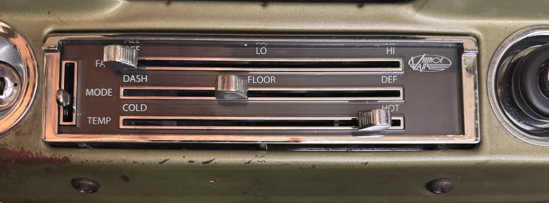 One of the slider arms on my dash control was broken off, so I got a replacement dash control assembly from Vintage Air.